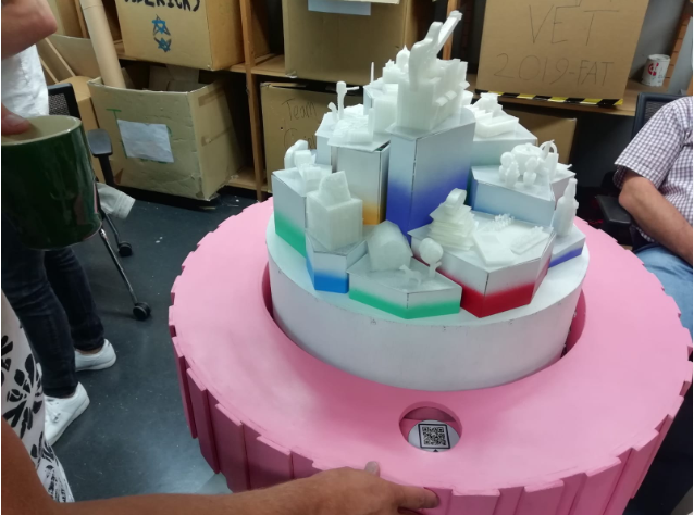 Today we placed our paper qr codes designed by Cedric on the installation, we needed those so that users would know where to turn the ring in order to select a location. The QR-codes provide some visual feedback to that and we asked Mark and Rene to test the experience to see if it worked properly and if any changes would have to be made to the design.
